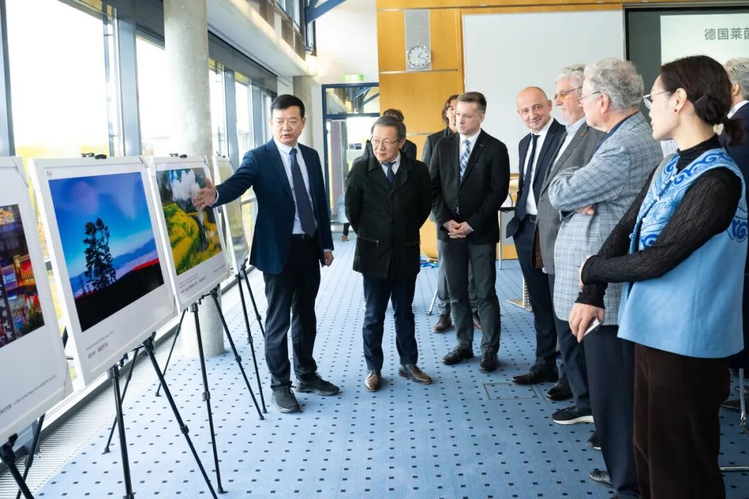 Um den deutschen Gästen die einzigartige Anziehungskraft Leshans anschaulich zu vermitteln, stellte Herr Xu Tianyi den Inhalt der „Leshan-Fotoausstellung“ detailliert vor. Die Ausstellung veranschaulichte die Stadtlandschaft und den kulturellen Charme Leshans auf lebendige Weise. Die deutschen Gäste zeigten großes Interesse und äußerten mehrfach den Wunsch, Leshan bei Gelegenheit persönlich zu besuchen.