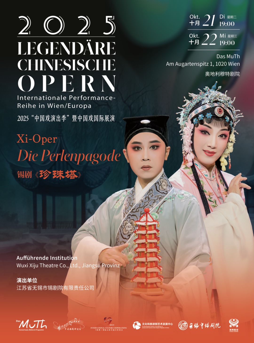 Wien, Österreich – Am Abend des 21. und 22. Oktober 2025 (Ortszeit) bot die chinesische Xi-Oper, auch „Perle des Taihu-Sees“ genannt, mit ihrem klassischen Meisterwerk „Die Perlenpagode“ zwei aufeinanderfolgende, ausverkaufte Vorstellungen im Muth Theater in Wien, der Welthauptstadt der Musik, und präsentierte damit ein gelungenes grenzüberschreitendes Kunstfest. Diese Europatournee des Wuxi Xi-Oper Theaters, die zum nationalen immateriellen Kulturerbe Chinas zählt, zeigte nicht nur den einzigartigen Charme der traditionellen chinesischen Oper, sondern wurde auch zu einer lebendigen Praxis des kulturellen Austauschs zwischen China und Österreich.